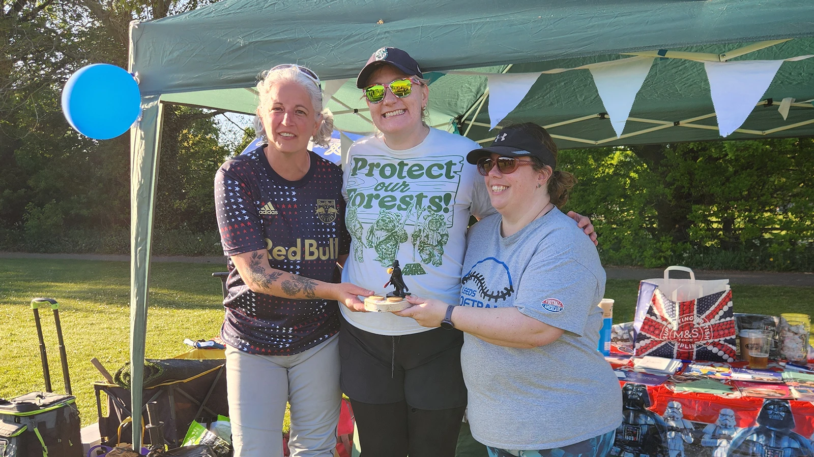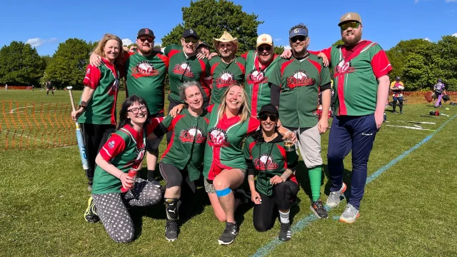 For the second year, teams travelled from across Leeds, as well as friends joining us from Manchester, Bristol, London and the East Midlands, to play in our charity First ball tournament. Hosted at the Adel War Memorial Association sports grounds in north Leeds, the clubhouse did us proud, keeping players supplied with drinks, and tossing burgers like champions on the BBQ. We raised over £500 for Leeds Mind, with folks really liking the raffle, and teams buying our dark side and light side jokers. The jokers were be purchased from the umpires, and used to “force” the rules, bending them to your team’s favour. We saw great plays (even if some were overturned by some craft joker-work), and some of it in fancy dress too! We would especially like to thank the Softball Shop and anyone else that donated prizes to the raffle.